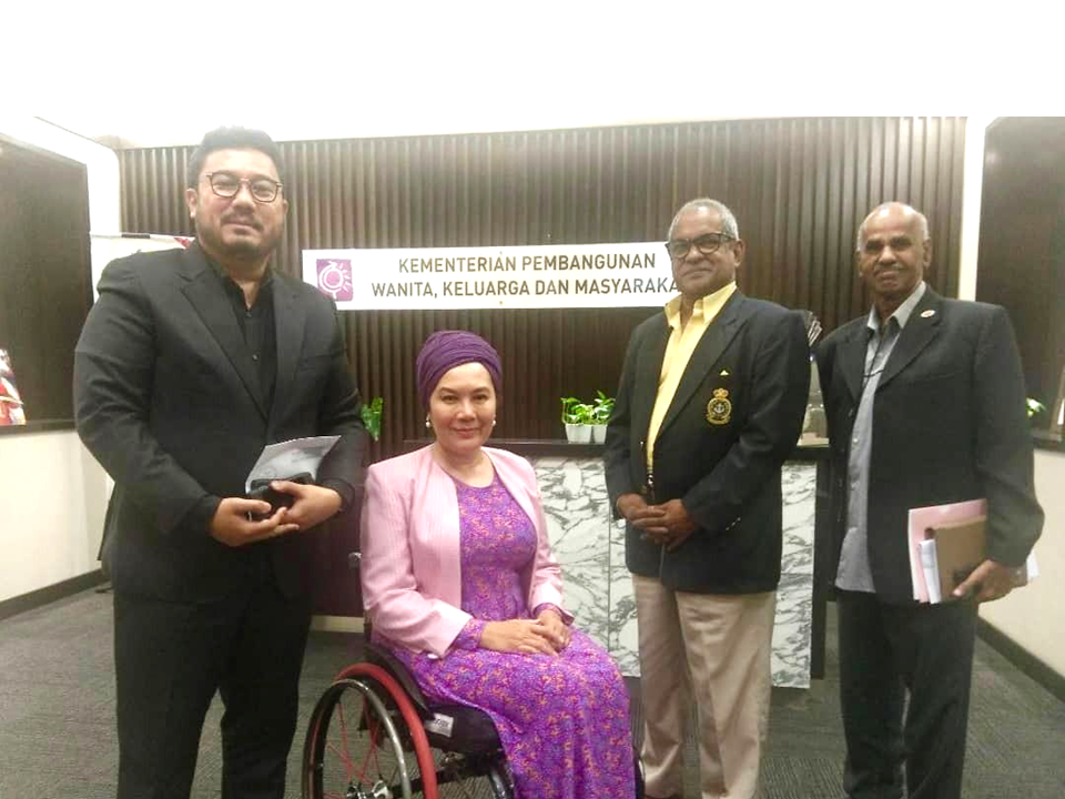 President of the Paralympic Council of Malaysia, Dato’ Sri Megat D. Shahriman Bin Dato’ Zaharudin together with First Admiral Dato’ Subramaniam Raman Nair (R) the Secretary General and Mr Mohan Govindasamy the General Manager, paid a courtesy call to newly appointed Senator of Dewan Negara, YB Ras Adiba Radzi at her office in the Ministry of Women, Family & Community Development in Putrajaya.