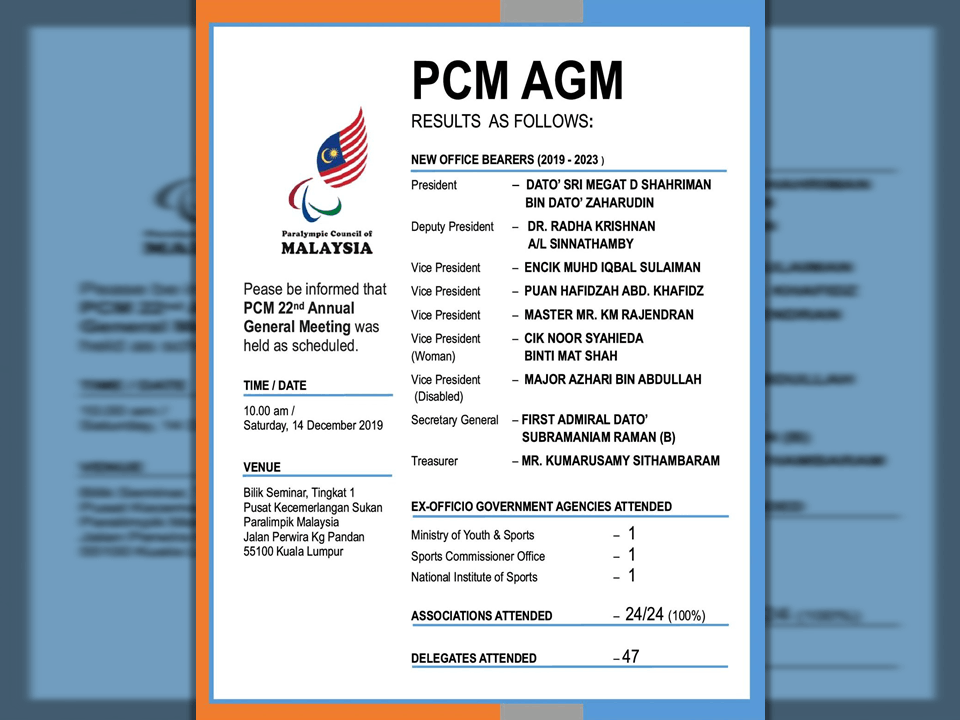 The Paralympic Council of Malaysia (PCM) AGM Result
