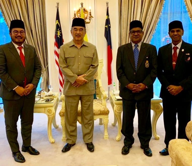 President of the Paralympic Council of Malaysia, Dato’ Sri Megat D. Shahriman Bin Dato’ Zaharudin together with First Admiral Dato’ Subramaniam Raman Nair (R) The Secretary General and Mr Mohan Govindasamy the General Manager, paid a courtesy call to the Malacca Governor, T.Y.T Tun Dato' Seri Utama Haji Ali Rustam at his office on 13 August 2020.
