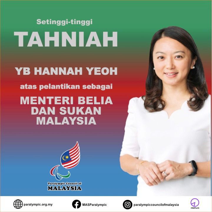 The Paralympic Council of Malaysia (PCM) believes that newly-minted Youth and Sports Minister Hannah Yeoh (pix) will elevate the country’s ‘Paralympic Movement’ to greater heights.
