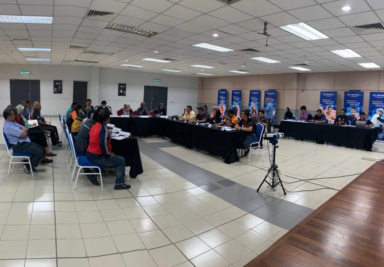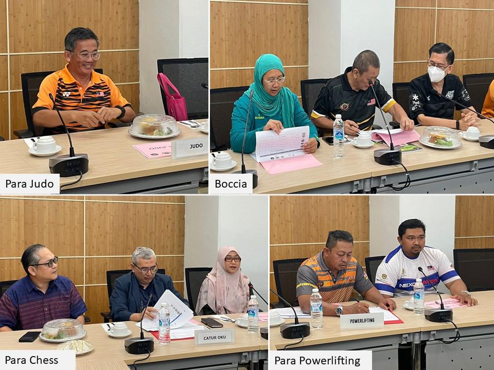Encik Sofian Hamzah, Director of Para Sports Division National Sports Council, representative from National Sports Institute & Team Managers of 12 Para-Sports, i.e Para Athletics, Para Badminton, Boccia, Chess, Blind Football, CP Football, Goalball, Para Judo, Para Powerlifting, Para Swimming, Para Table Tennis and Wheelchair Basketball listened to the briefing given by the CDM.