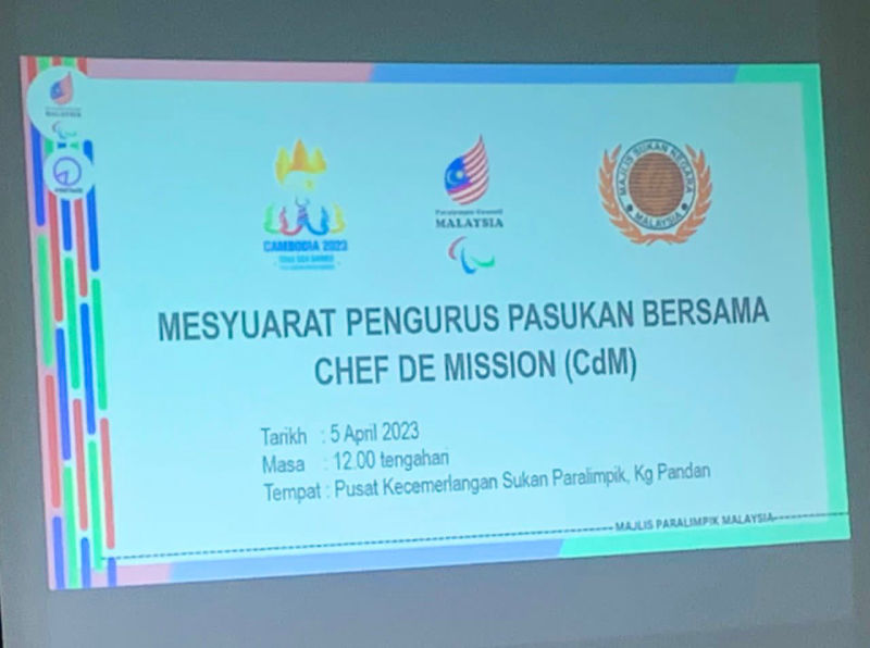 Ms Noor Syahieda Binti Mat Shah, the CdM for Cambodia 2023 12th ASEAN Para Games chaired the Team Managers’ Meeting held at Paralympic Sports Centre of Excellence Kampung Pandan on 5 April 2023 (Wednesday). Ms Noor is also a Vice President of Paralympic Council Malaysia.