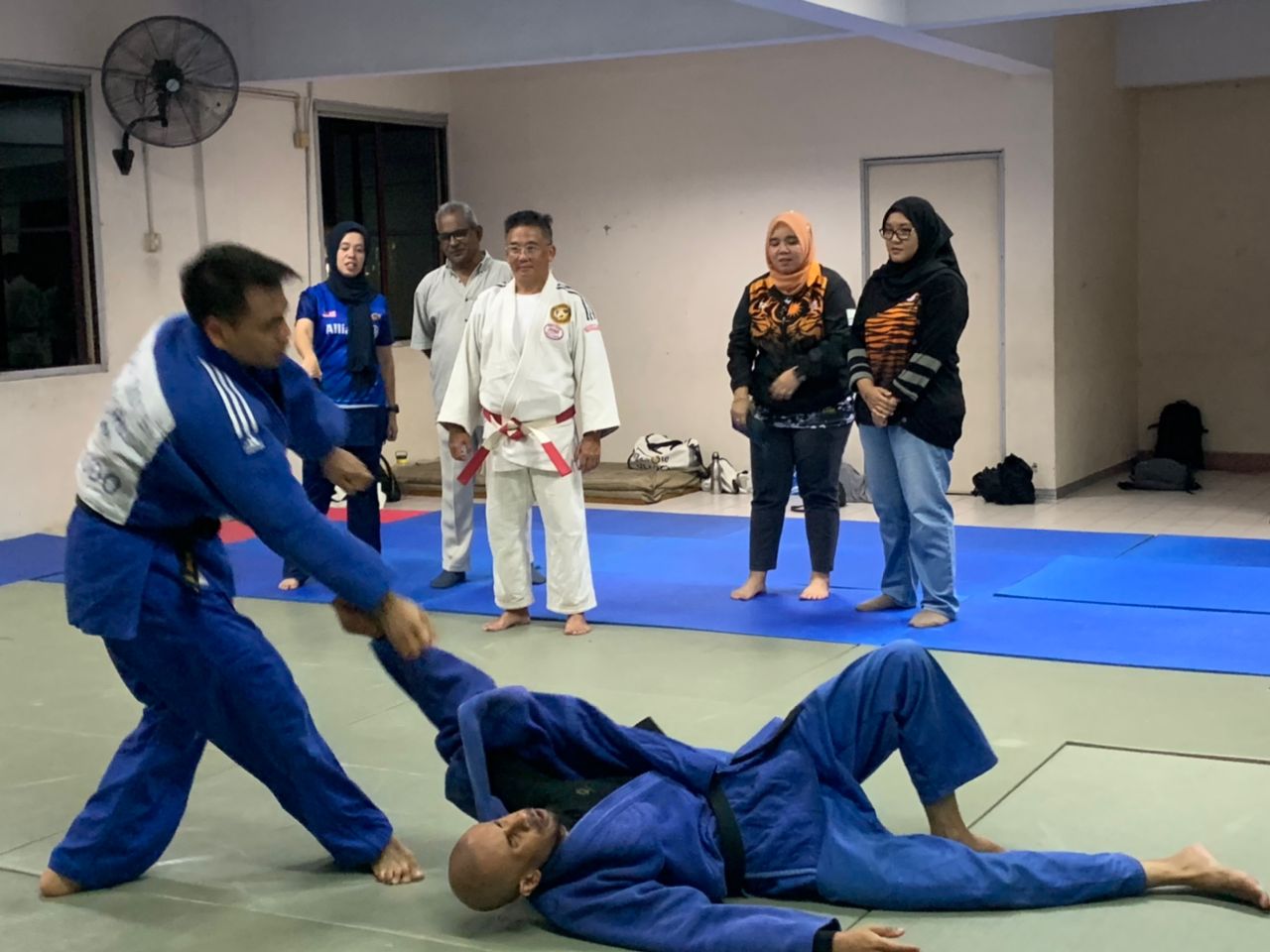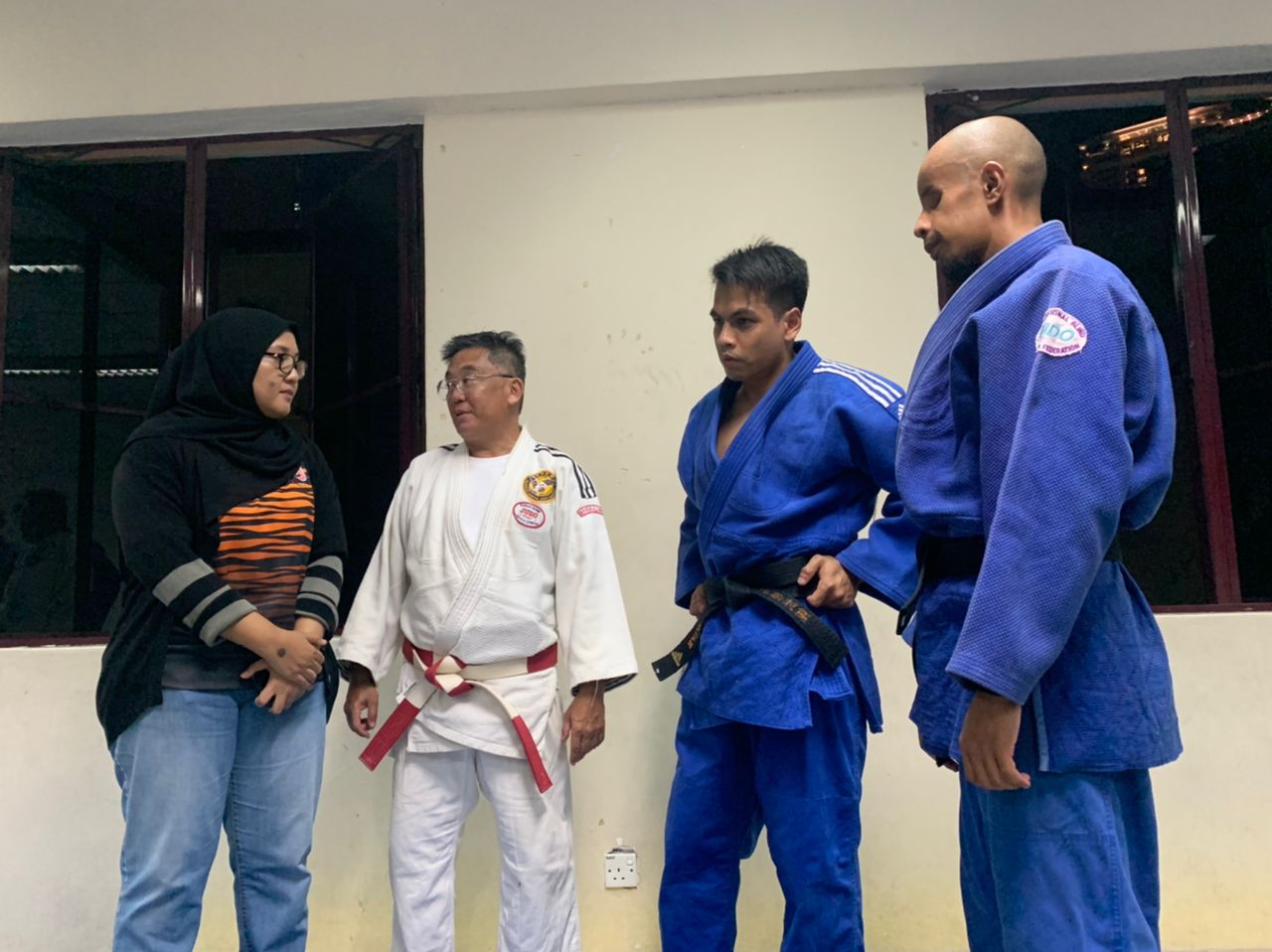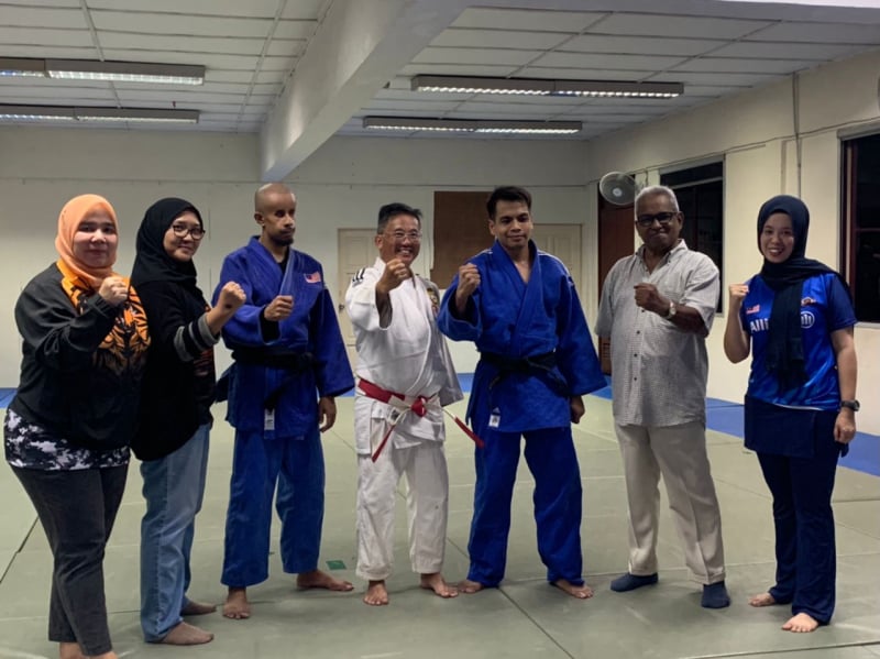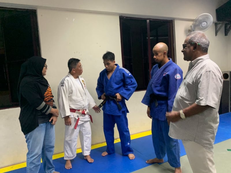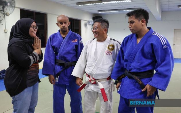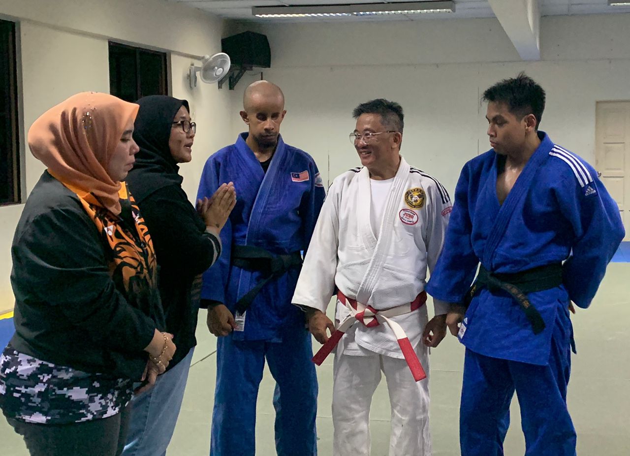 CdM Para Contingent Malaysia Cik Noor Syahieda Binti Mat Shah’s first visit together with First Admiral Dato' Subramaniam Raman Nair (R), Secretary-General of Paralympic Council Malaysia and officials from National Sports Council's Para Sports Division to Para Judo training facilities at the Level 3, MAB, Brickfields to review the training sessions for the final preparations of meeting para Judo athletes, Mohd Khairul Azmi Abd Rahaman, (J2, Men’s -60 kg), Muhammad Fatah Bin Abu Bakar (J2, Men’s -73 kg) & Lee Chee Hock (J1, Men’s -90 kg). She gave a pep talk to motivate to take on the challenge and make Malaysia proud.