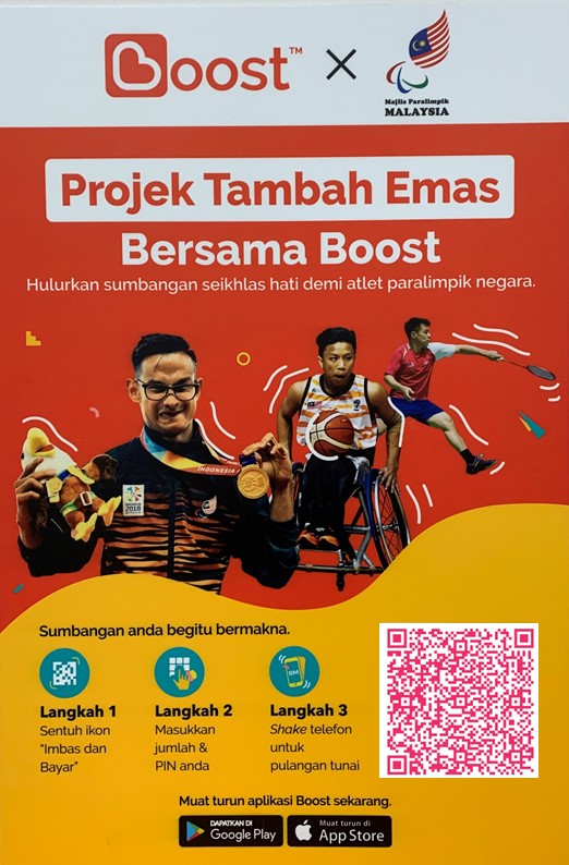 The TambahEMAS Paris 2024 Box will be located at all Health Lane Family Pharmacy cashier counters as from 1 June to 31 December 2023. You can also support the Paralympic Movement by contributing to PCM "TambahEMAS" campaign fund by click and scan the QR Code. This is a collaborative effort by the community to elevate our Paralympic Movement in Malaysia to greater heights. Demi Malaysia!!!