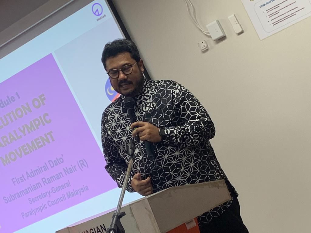 Objective of the program is to provide direct exposure to course participants regarding Paralympic Movement and classification techniques of Paralympic Sports. The course participants consisted of Specialists/Medical Officers & Physiotherapist from Ministry of Health Malaysia. First Admiral Dato Subramaniam Raman Nair (R), the Secretary General of PCM, presented lectures on the Evolution of Paralympic Movement, Development of Paralympic Council of Malaysia dan ParaSports Classification System. Dr. Ahmad Munawwar Helmi Bin Salim, Medical Officer from National Sports Institute (ISN), gave talks on "Role of ISN." One of the classifiers, Prof. Dr. Shamsul Azhar Bin Shah, Public Health Medical Consultant, UKM Medical Centre, Cheras, shared his experiences as an International Classifier and led a practical classification session with para-athletes.