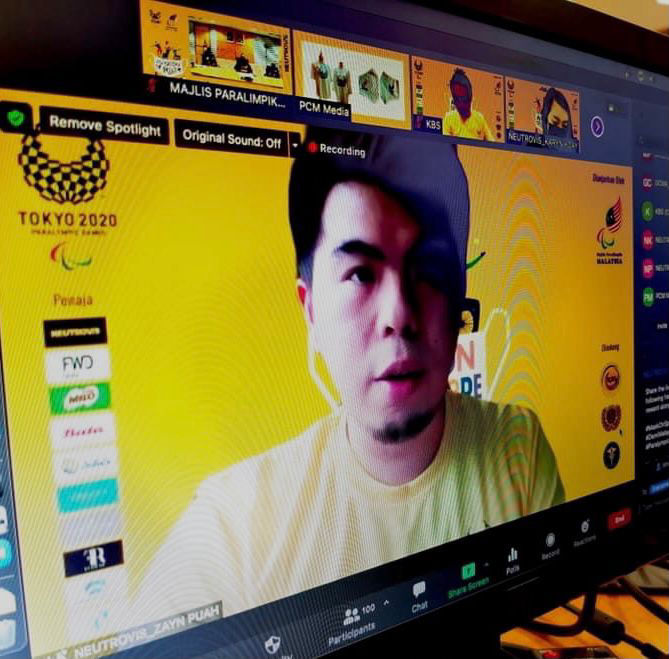 Paralympic Council of Malaysia (PCM) held an online event “MALAYSIAN PARA TEAM SPIRIT STRENGTHENING CEREMONY FOR TOKYO 2020 PARALYMPIC GAMES & SPONSOR APPRECIATION CEREMONY and briefed the games by Chef de Mission (CdM) & President of PCM, YH Dato’ Sri Megat D Shahriman Bin Dato’ Zaharudin, the message of YB Senator Tuan Wan Ahmad Fayhsal Bin Wan Ahmad Kamal, Deputy Minister of Youth and Sports Malaysia and officially announced Rakan Para Games which assisted the Malaysian Para Team and was followed by a press conference.
